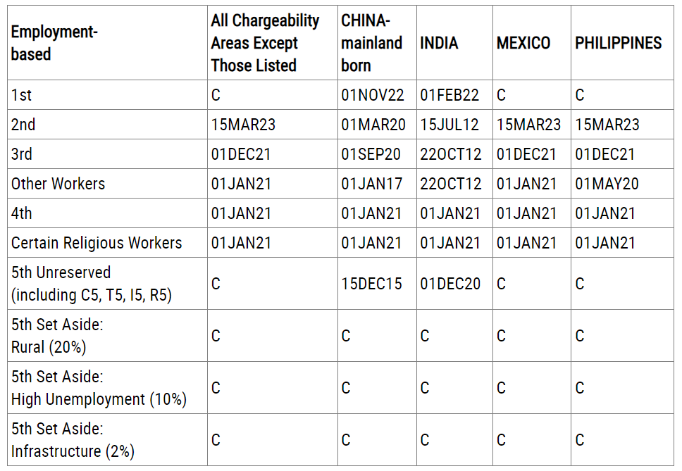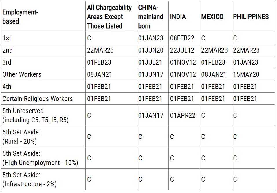 5th:EB−5投資移民;Unreserved 對應未特別保留簽證名額的類別,包含依據舊法遞交的申請,Set Aside 即對應新法三類保留簽證名額的情況。