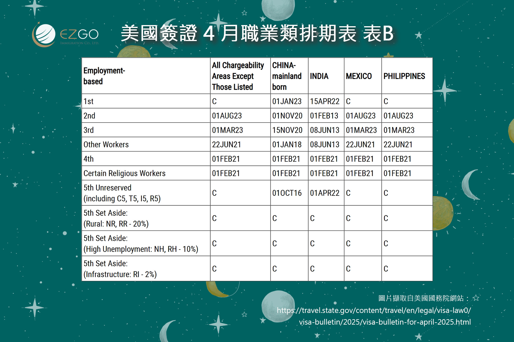 根據排期表B(Dates for Filing)遞件排期,對於台灣出生的申請人來說:
