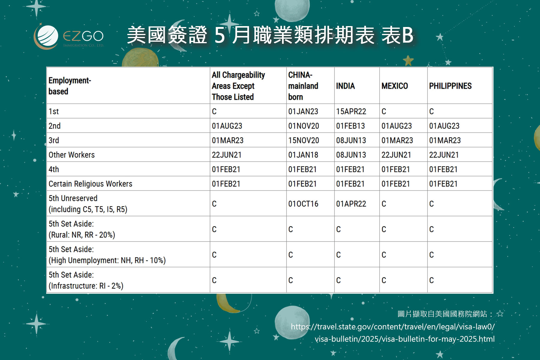 根據排期表B(Dates for Filing)遞件排期,對於台灣出生的申請人來說: