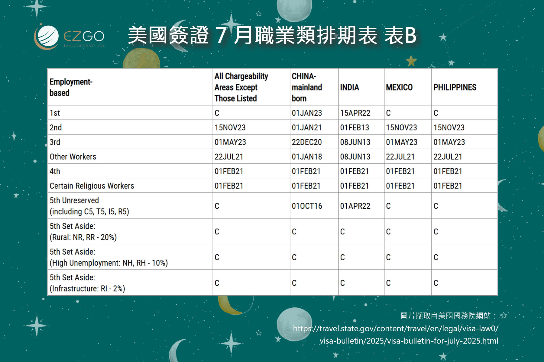 根據排期表B(Dates for Filing)遞件排期,對於台灣出生的申請人來說: