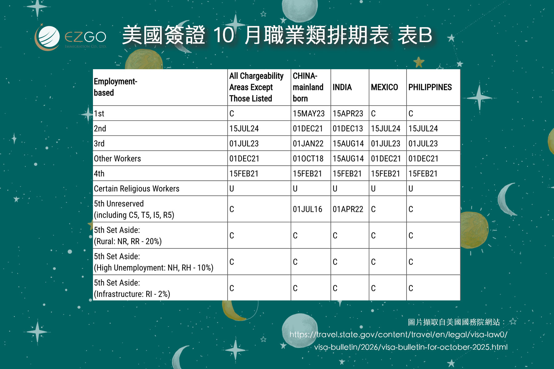根據排期表B(Dates for Filing)遞件排期,對於台灣出生的申請人來說: