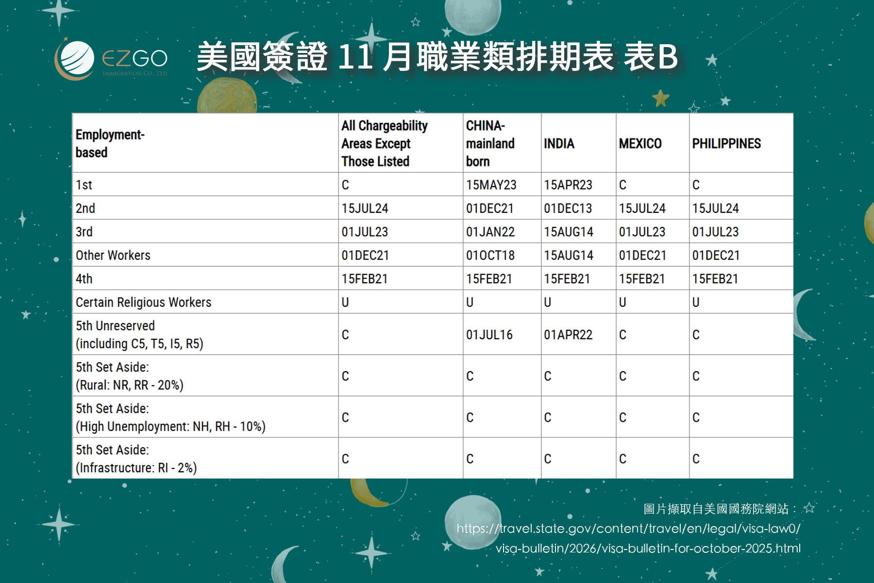 根據排期表B(Dates for Filing)遞件排期,對於台灣出生的申請人來說: